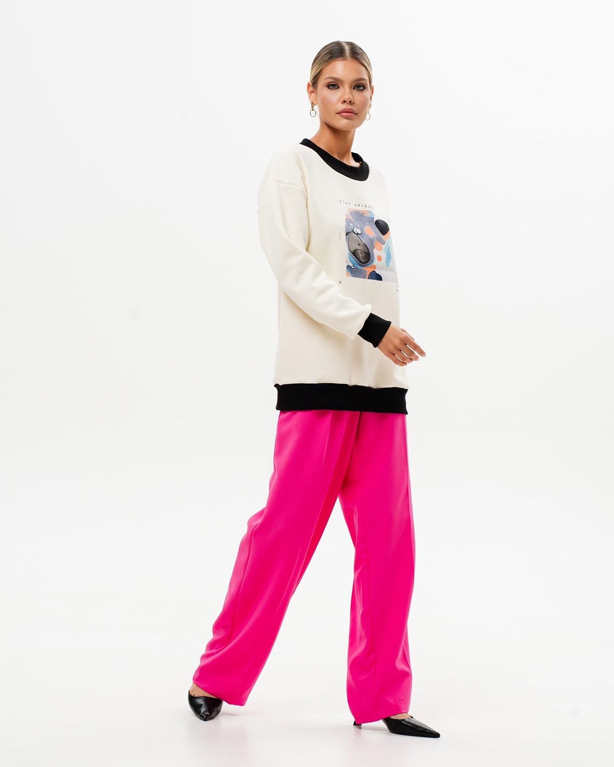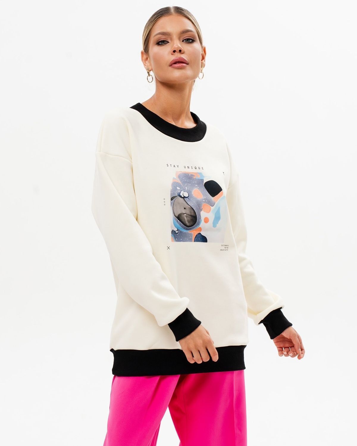 Женский свитшот оверсайз со стильным принтом бренда SAHAR Art lab - идеальная кофта для работы, школы или спортивных занятий. Теплая флисовая ткань и широкий оверсайз крой делают изделие комфортным в носке.