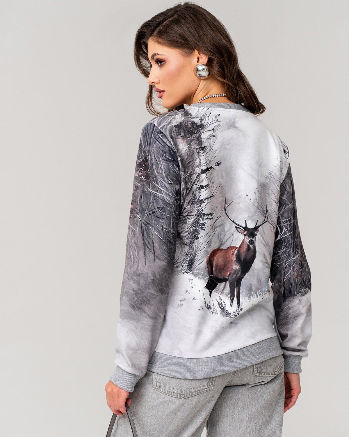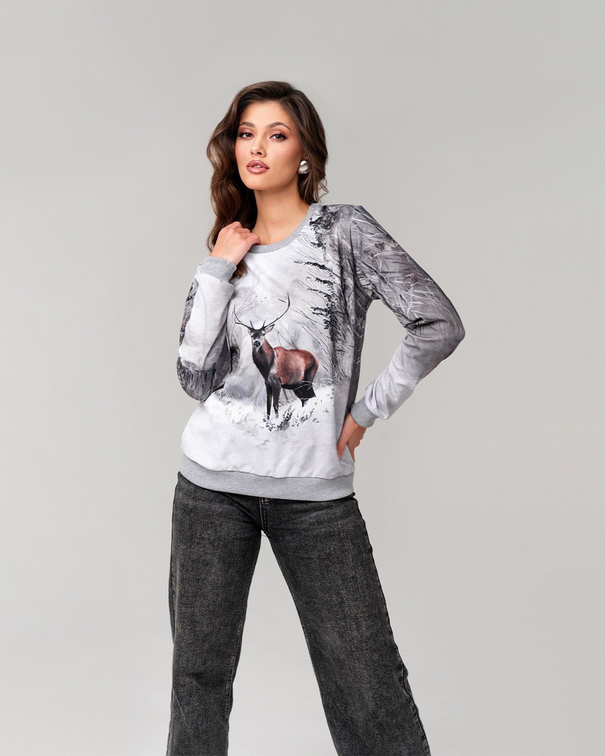 Свитшот с принтом сделан из интерлока - материала, который с изнаночной стороны состоит из хлопка, а снаружи имеет специальный полиэстеровый слой для стойкого нанесения рисунка. Благодаря этому изделие приятно для тела, а принт спокойно переживет хоть сотню стирок и останется таким же ярким и сочным.