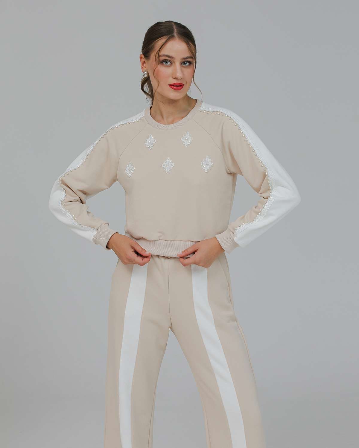 Свитшот укороченный с бусинами BSK001.