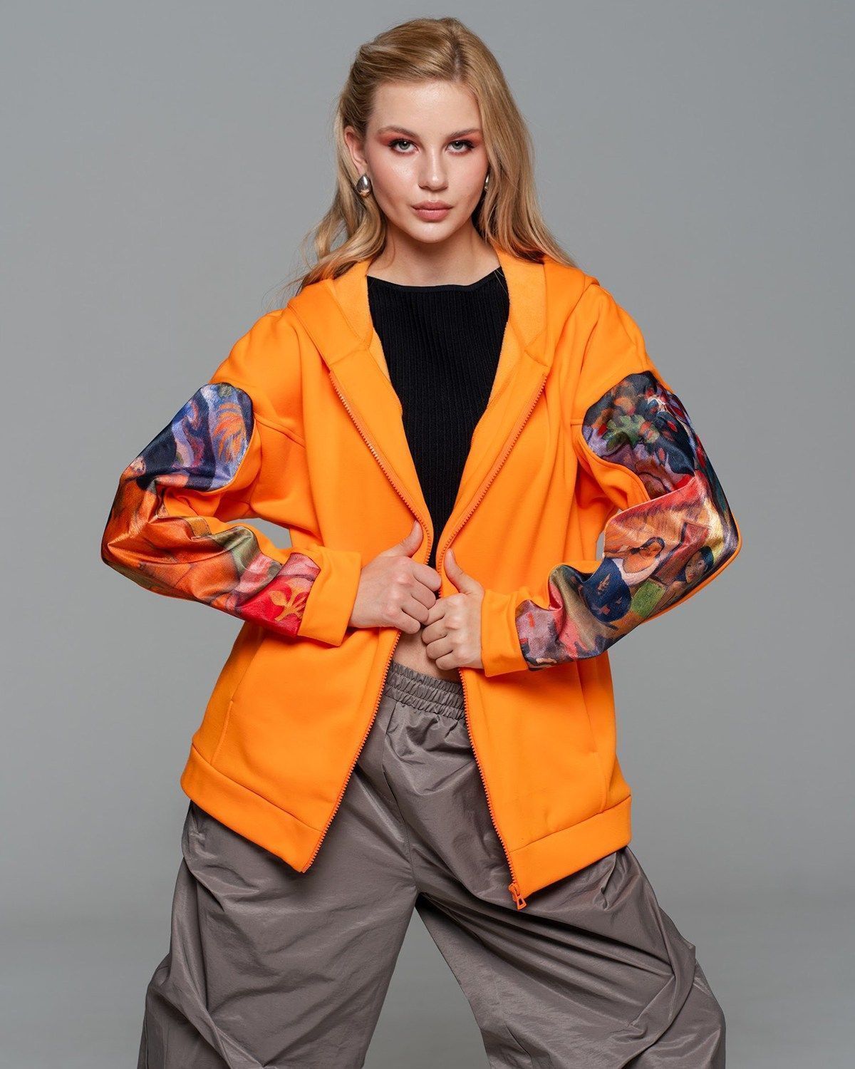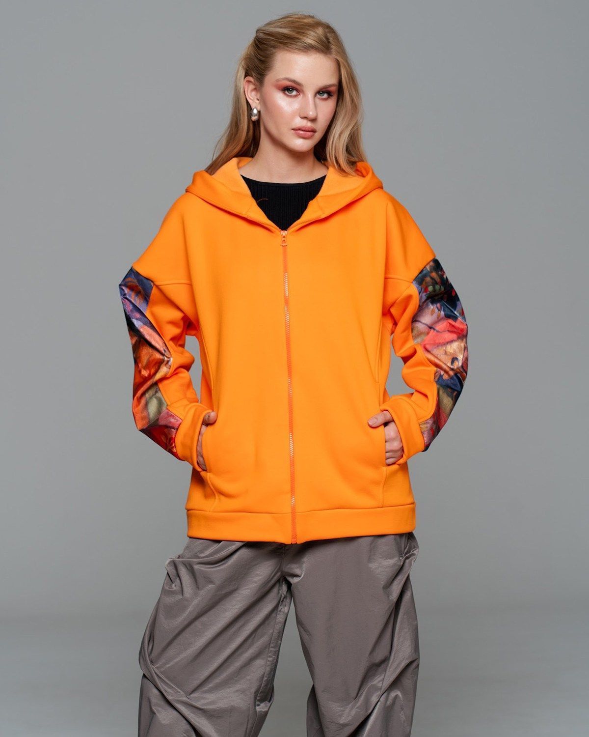 Толстовка женская с органзой - очень стильная и необычная вещь, которая станет изюминкой вашего гардероба. Идеально подойдет как к спортивному повседневному, так и к нарядному образу. Благодаря вставкам из органзы на рукавах и спине, толстовка выглядит очень необычно и красиво. Вы сможете создать множество модных образов с этим изделием. Капюшон и боковые карманы делают толстовку очень удобной и комфортной. Спущенная линия плеча и оверсайз крой позволяет изделию идеально сидеть на любой фигуре. Необычный принт на спине точно привлечет внимание к вашему образу, а толстовка станет любимой вещью в гардеробе.