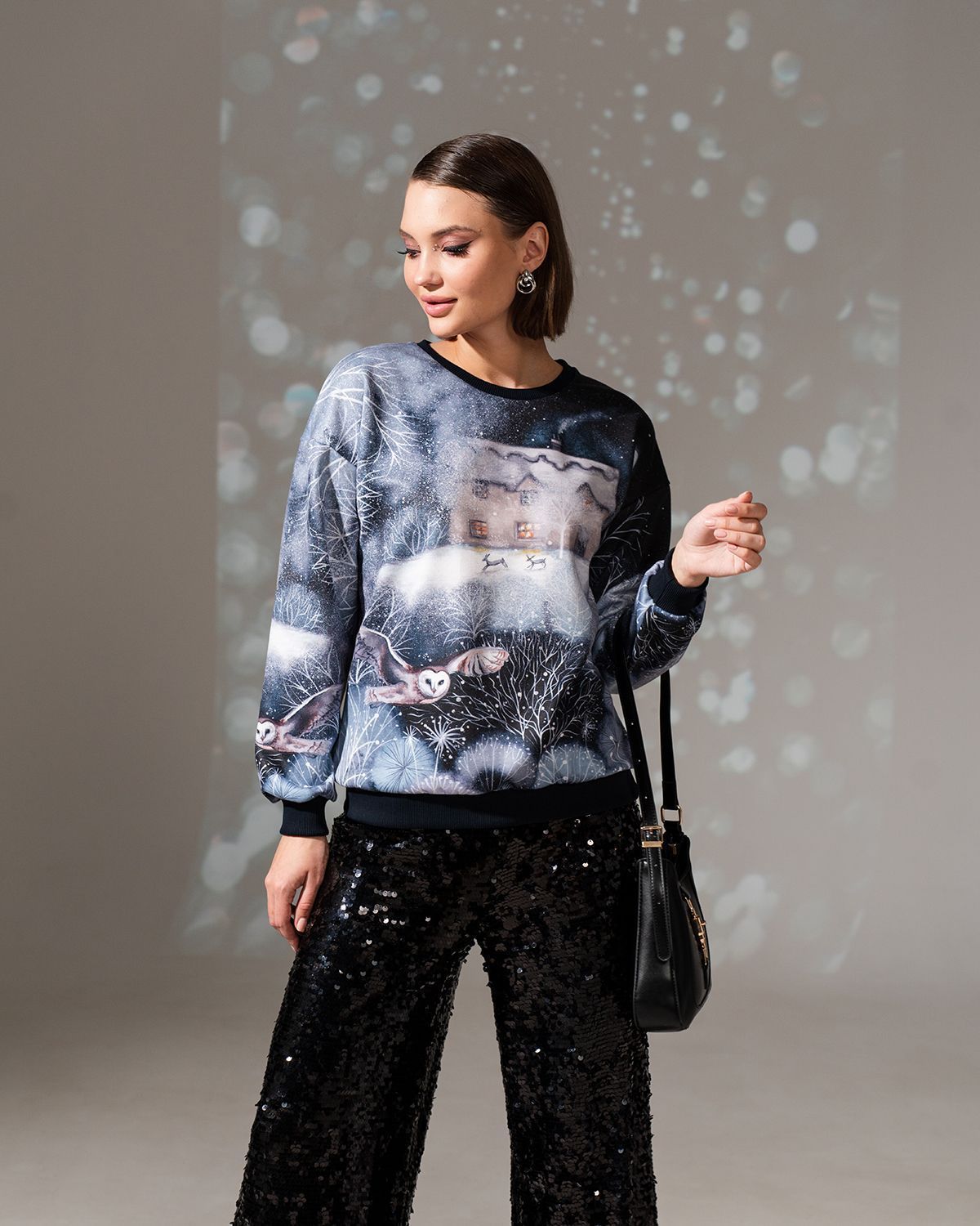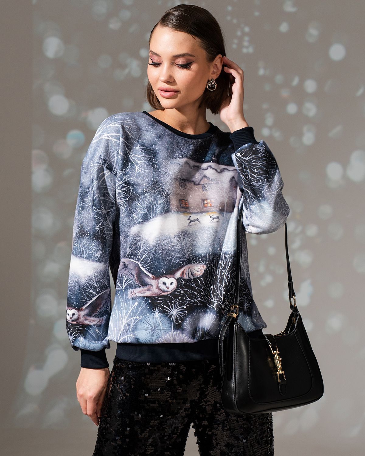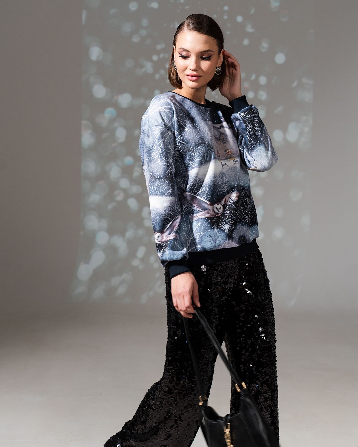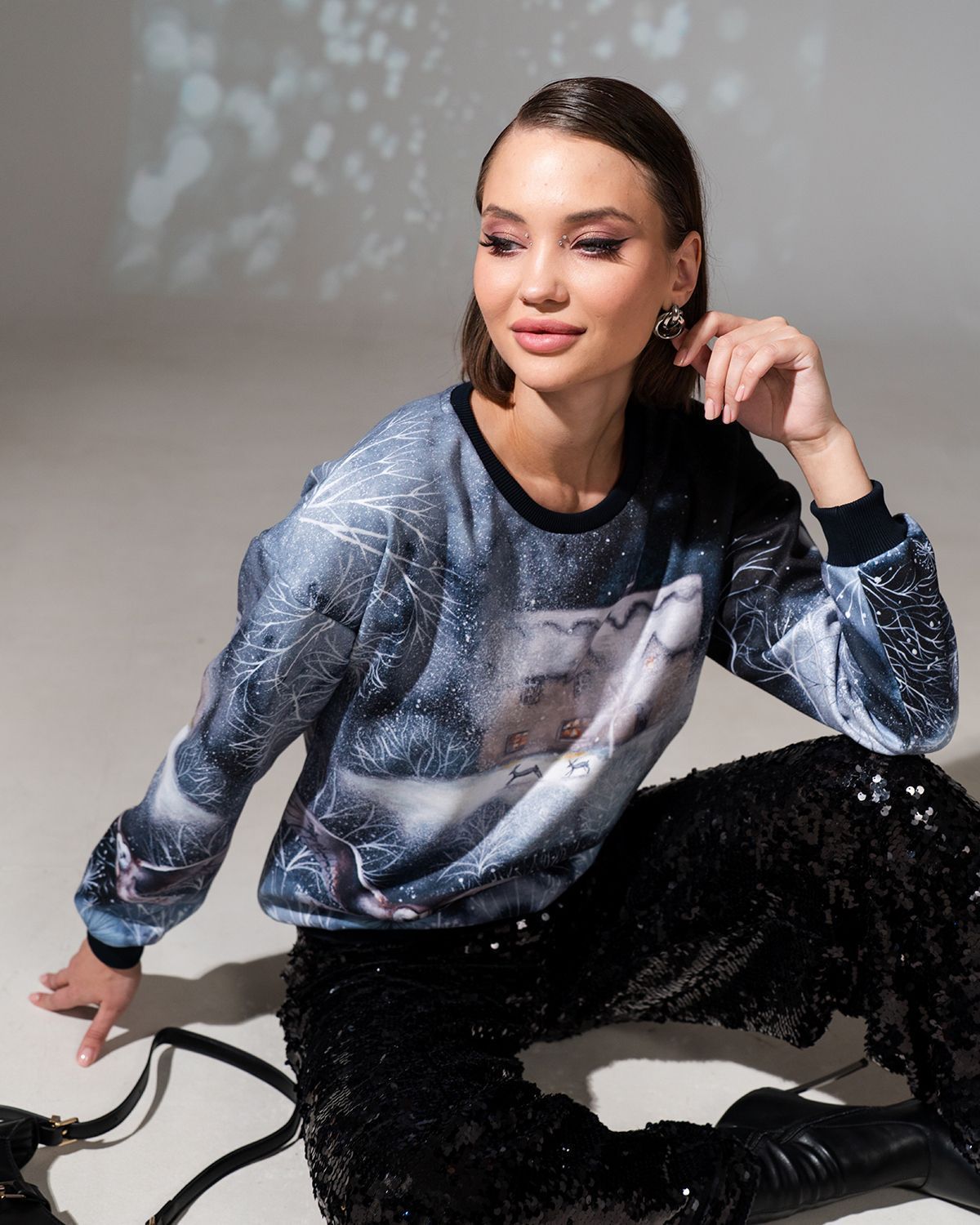 Самые смелые дизайнерские принты для Вашего гардероба нанесены методом сублимационной печати, которая делает рисунок ярким и очень устойчивым, ему не страшны машинные стирки. Цвет сохраняет сочность на протяжении нескольких сезонов. Достигается это также благодаря материалу, из которого изготовлен свитшот - интерлок. Это ткань, которая состоит из двух частей: внутри приятный для тела хлопок, а снаружи полиэстеровый слой, гарантирующий износостойкость принта.
