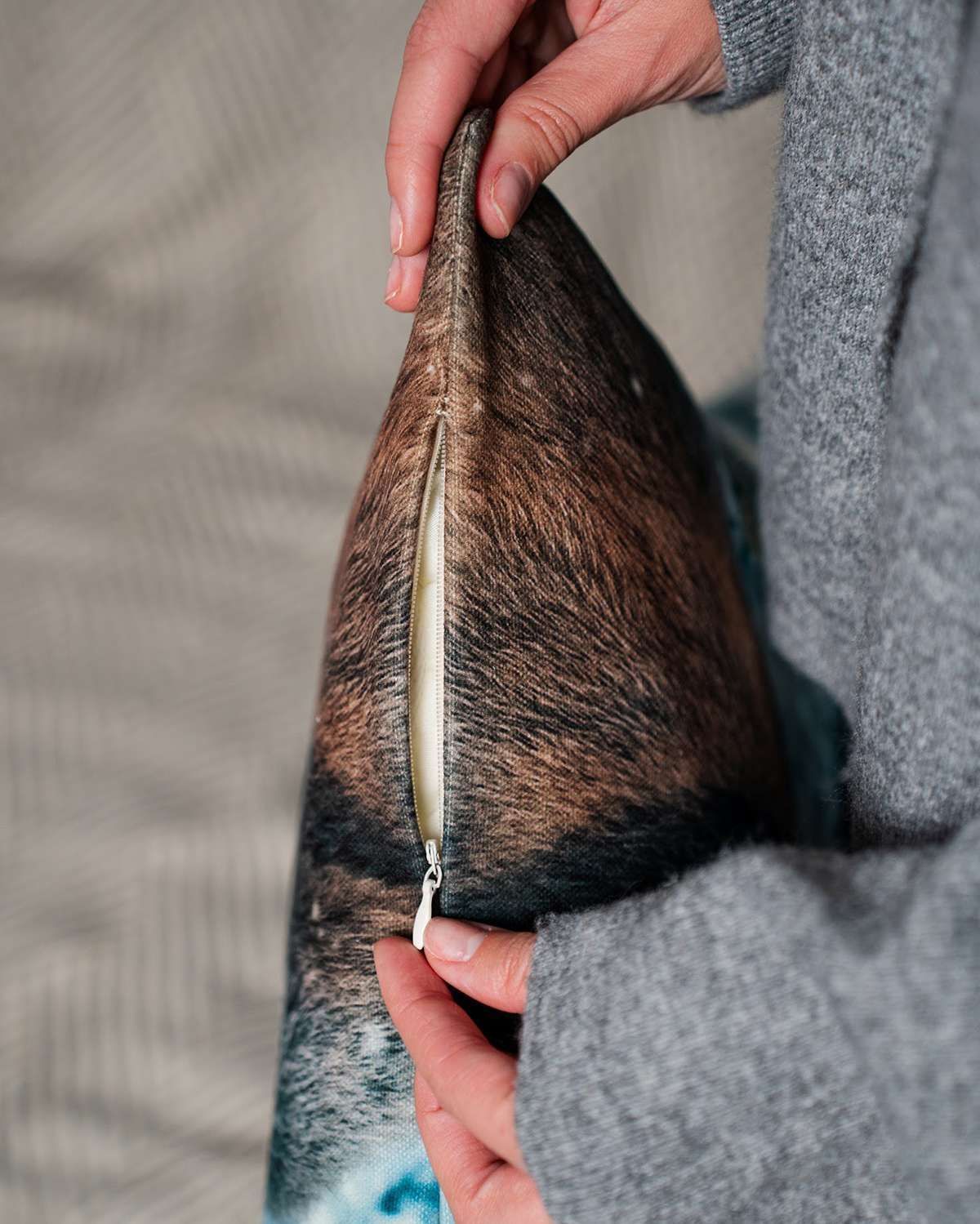 Мы используем качественные потайные молнии, которые легко открываются, закрываются и не ломаются при использовании. К тому же задняя часть подушки такая же удобная, как и лицевая, потому что молния никак не мешает и надёжно спрятана.