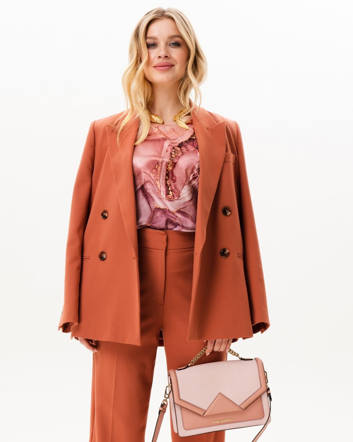Если хотите создать более расслабленный образ, как на модели, берите изделие на размер или два больше.