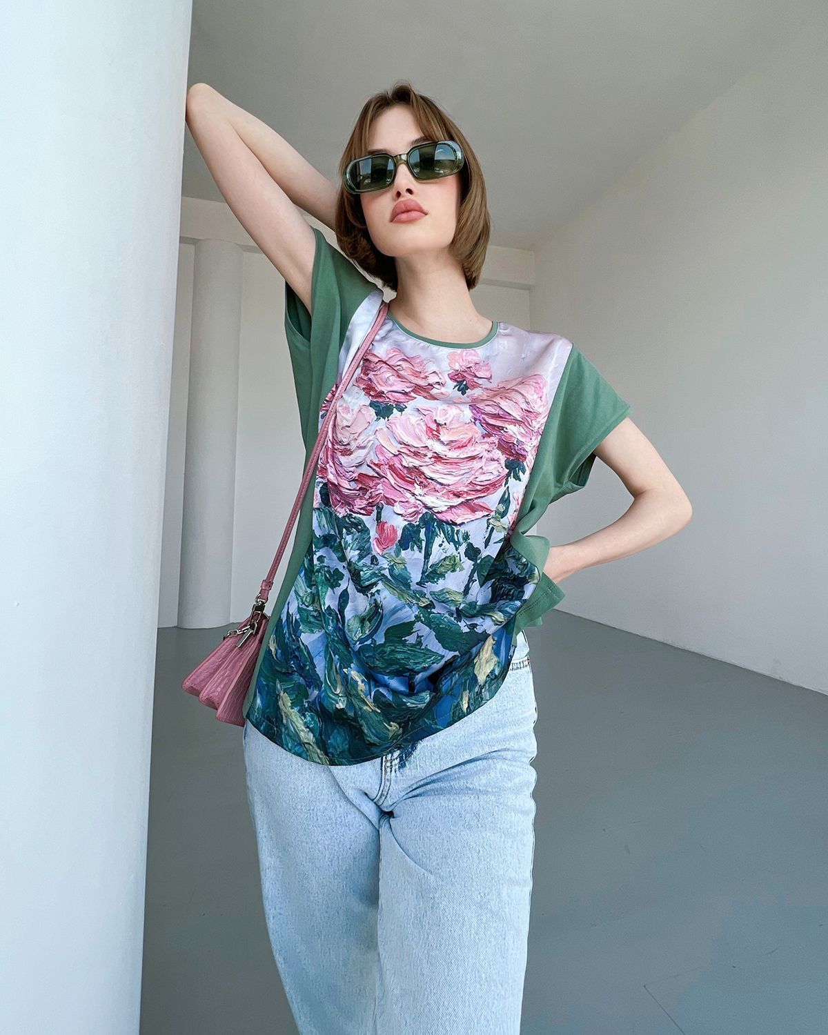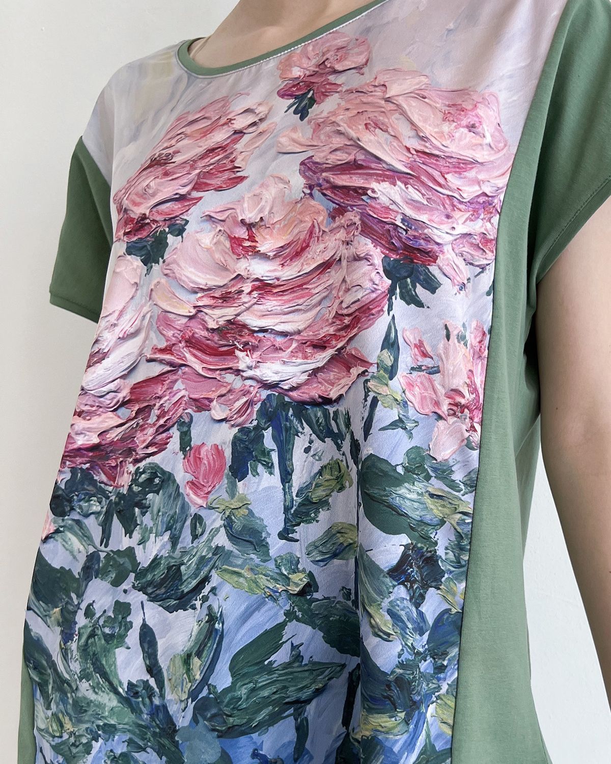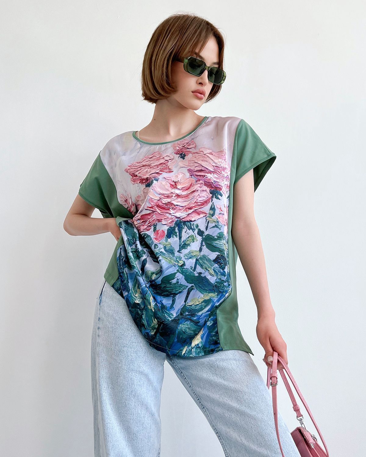 Туника женская сделана из премиальной хлопковой кулирки, а основой под принт стала шелковая вставка. Эти ткани можно спокойно стирать в стиральной машинке, они сохраняют свой вид надолго.