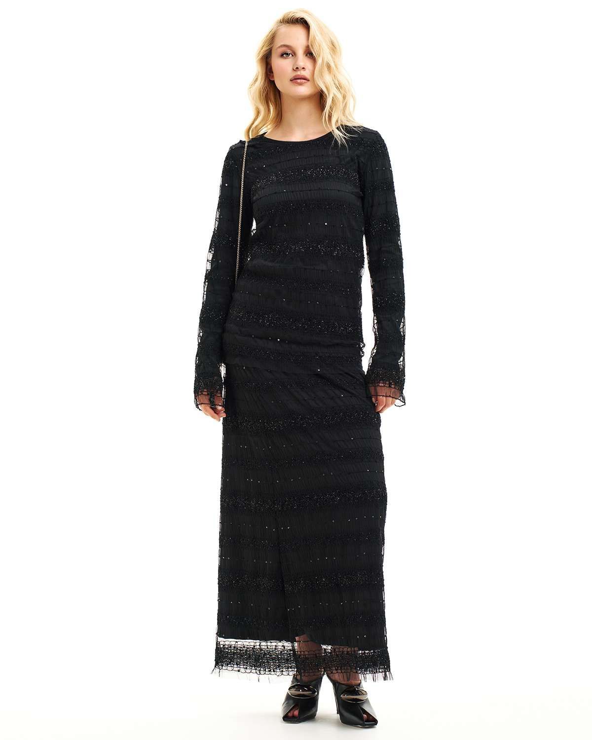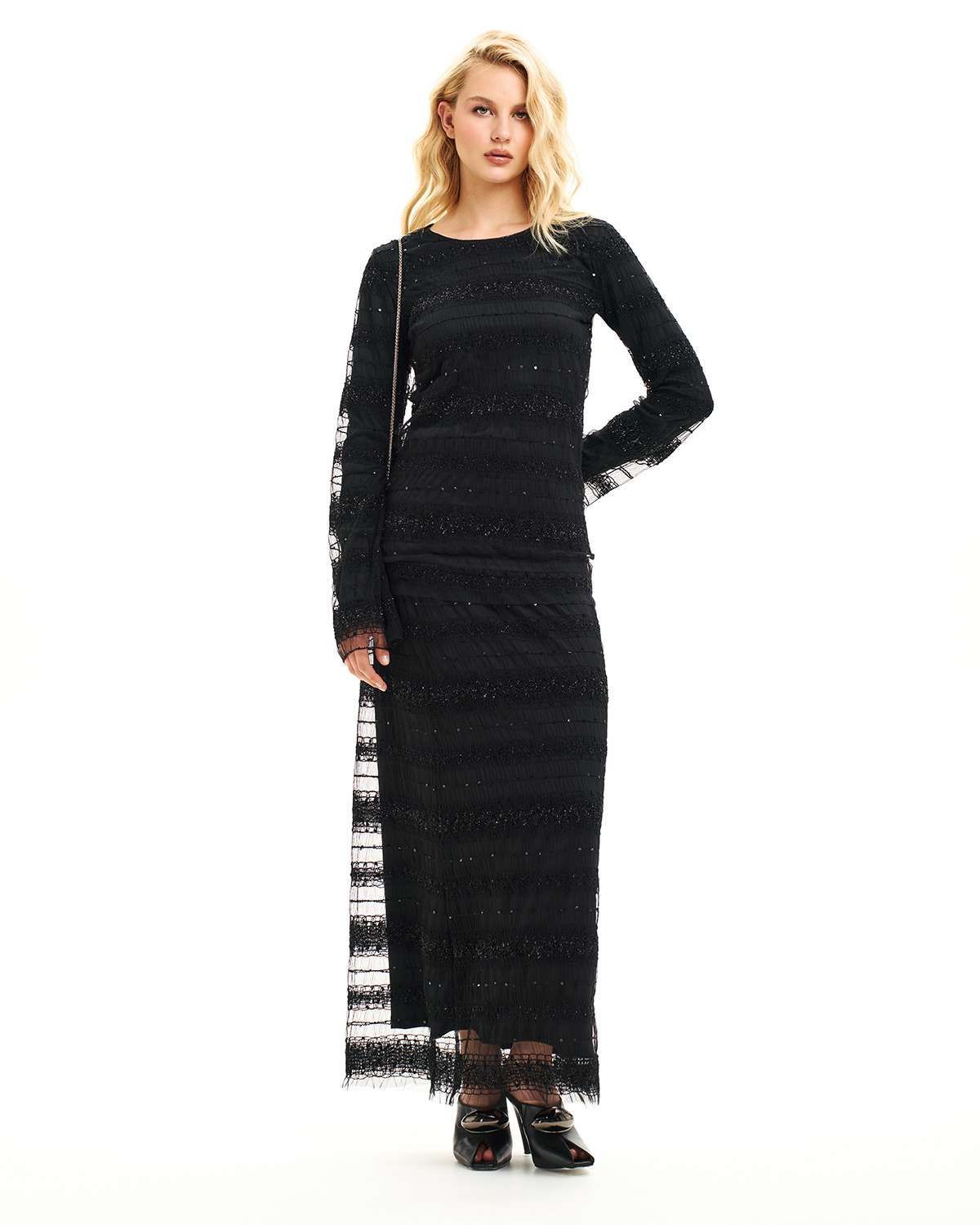 Юбка макси из сетки с вышивкой и люрексом KDU001