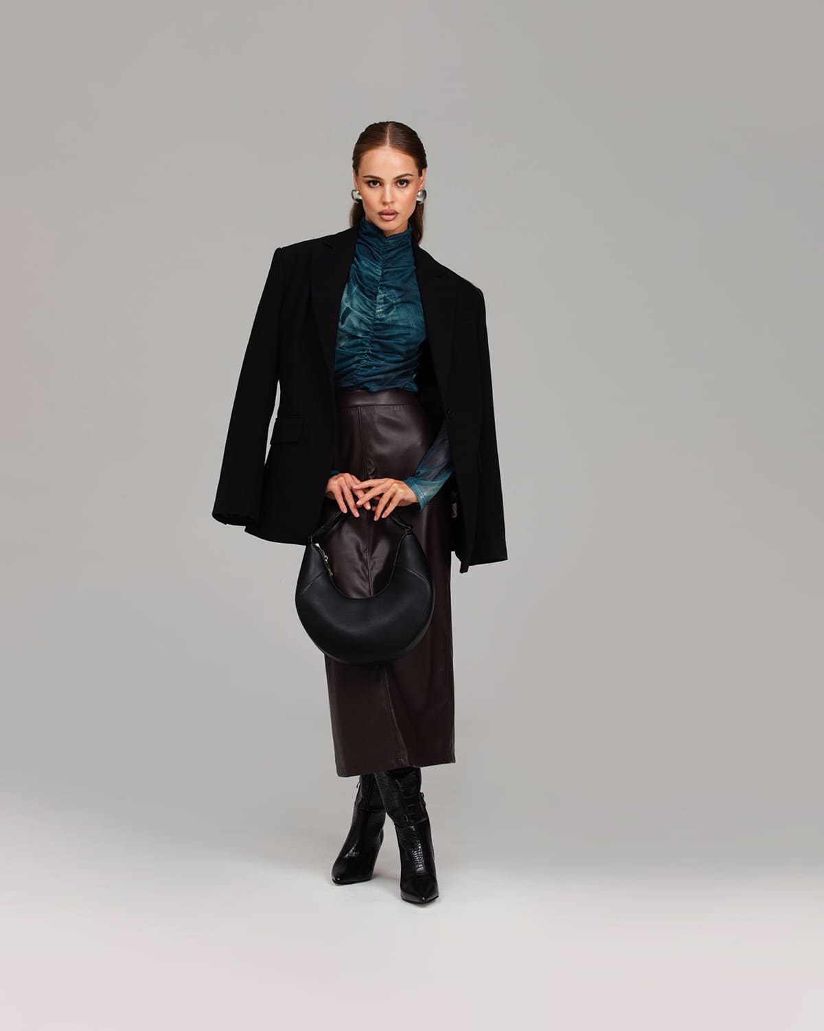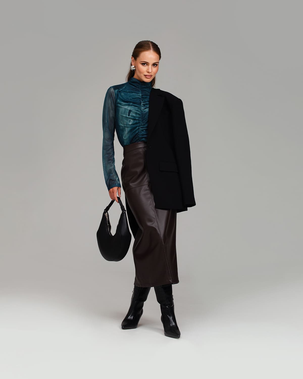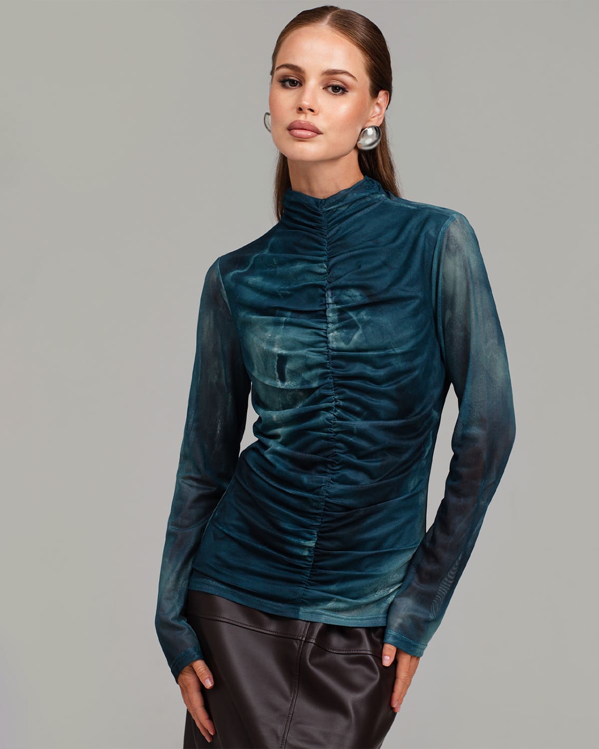 Водолазка из эластичной сетки с рельефами и сборкой - трендовый элемент гардероба для создания интересных многослойных образов. Облегающая подкладка впереди изделия делает водолазку не просвечивающейся и комфортной. Водолазка из сетчатой ткани очень приятна для тела. Она как будто воздушными нитями обволакивает кожу и практически не чувствуется. Материал мягкий и эластичный. Рельефы и сборка на ткани добавляют особый шарм и придают модели неповторимый стиль.